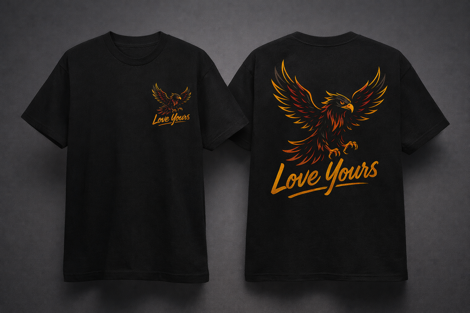 Featuring a bold eagle graphic symbolizing power and freedom, with LOVE YOURS stamped as the foundation, this piece speaks without saying too much. It’s not just a shirt — it’s a mindset.